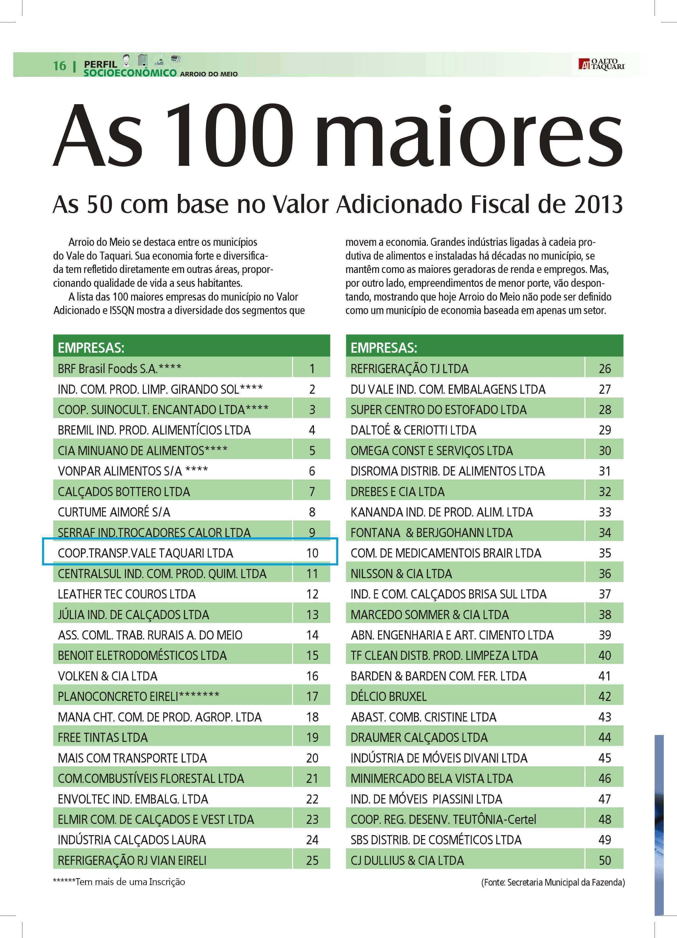 Arroio do Meio, cidade de forte e diversificada economia, divulgou recentemente em revista do Jornal o Alto Taquari, as 100 maiores empresas do município. Dentre elas, a Vale Log ficou classificada em 10ª colocação.