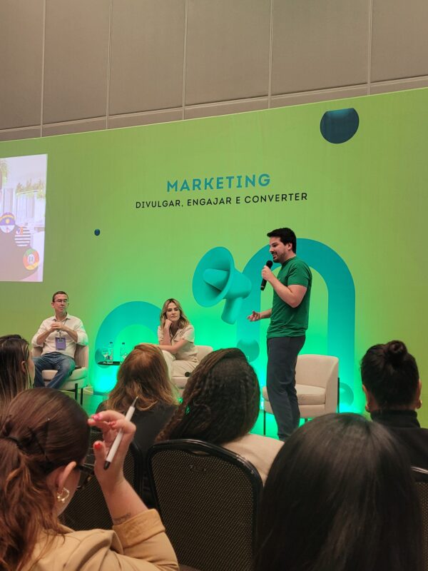 O talk “Marcas que respiram”, de Fred Gelli, CEO da Tátil Design, que abordou a construção de marcas autênticas com base na sustentabilidade, diversidade e transformação. Uma de suas frases mais marcantes sintetiza o tom do evento: