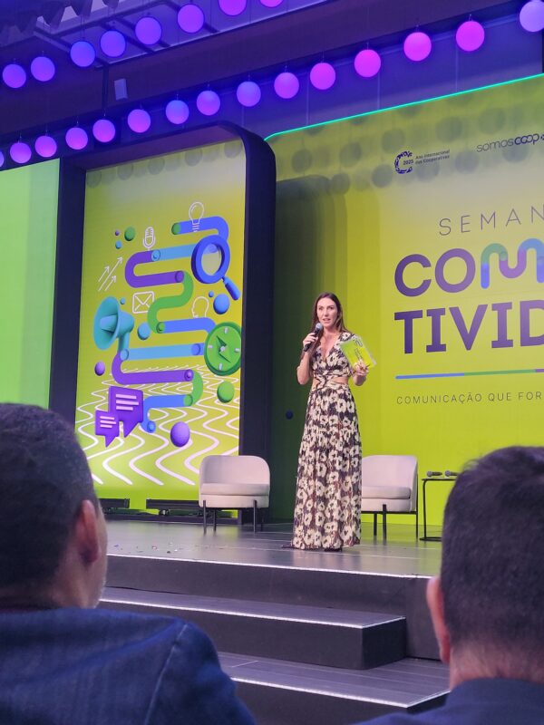 A palestra “SomosCoop”, com Fabíola Nader Motta, gerente geral do Sistema OCB, que apresentou o movimento como uma estratégia de fortalecimento da identidade e conexão das cooperativas com a sociedade.